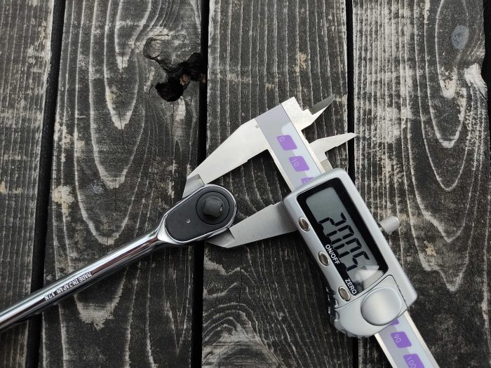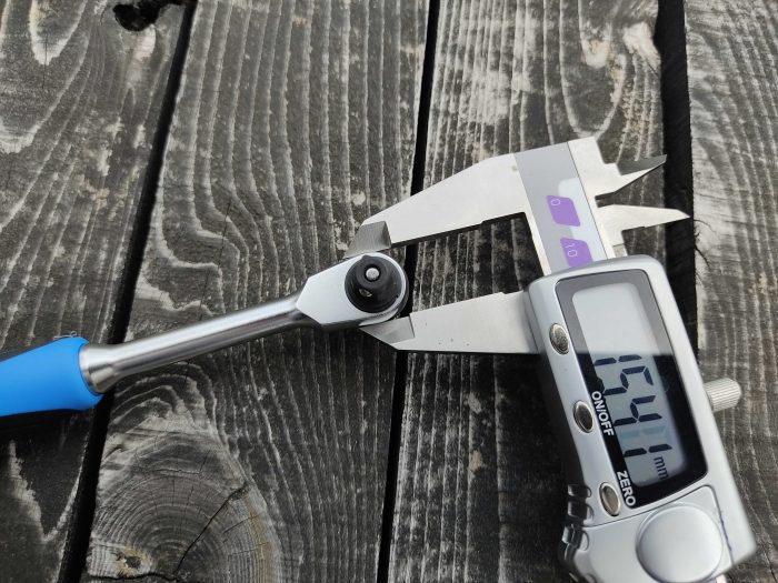 エクステンションバーを付けてみましたがエクステンションバー根元とラチェット頭が一直線上に収まっており縦に出っ張る事が殆どありません。