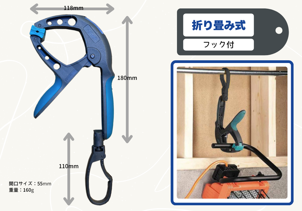 こちらは折り畳めるフック付きです。