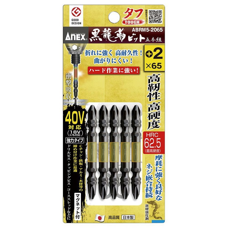 ANEX 黒龍靭ビット タフ 5本組 +2X65 ABRM5-2065 工具 アネックス 兼古製作所