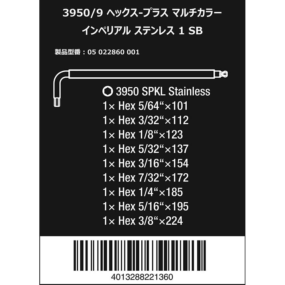 他の画像を見る WERA ステンレスL型ヘキサゴンレンチセット マルチカラー インチ 3950/9 Hex-Plus Multicolour Imperial Stainless 1 定価 ¥ 12,485 ¥ 9,405 税込 カートに入れる お気に入りに登録する