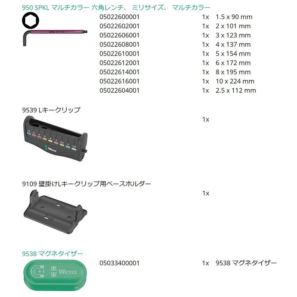 他の画像を見る WERA 133165 (Ball Hex-Plus)キーレンチスタンド付 950/9 Hex-Plusマルチカラー3 Lキーセット 動画あり 定価 ¥ 11,825 ¥ 9,460 税込 カートに入れる お気に入りに登録する