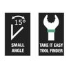 ねじ締め中に長手方向軸の周りでレンチを180度回転させると4つの配置が可能になり、ボルトまたはねじの頭は15度ごとに係合できます。