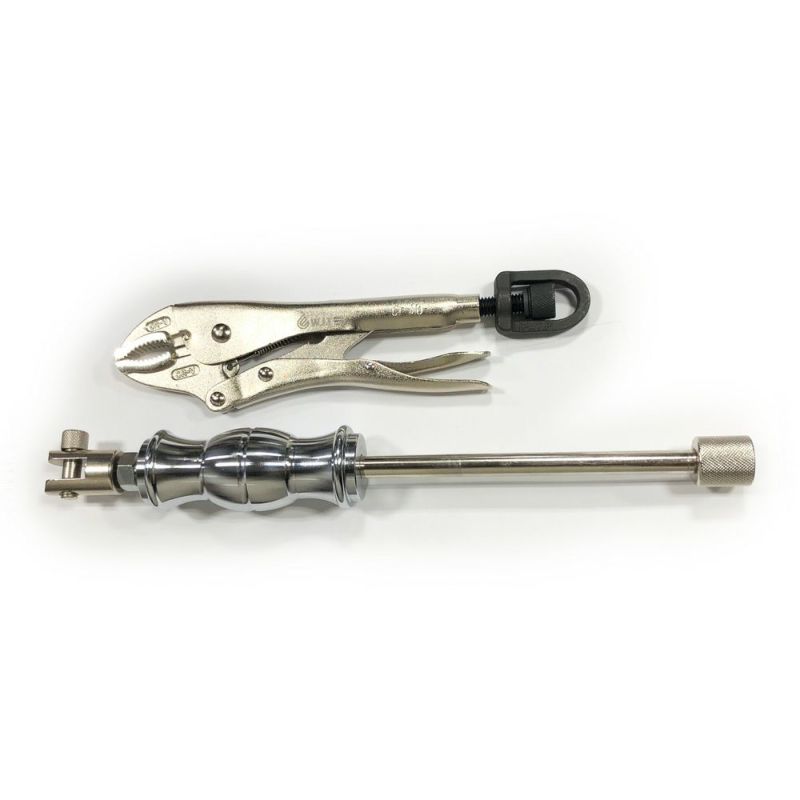 ロッキングプライヤーで対象物をがっちり掴み、スライドハンマー(スライディングハンマー)で引っ張ることが可能です。