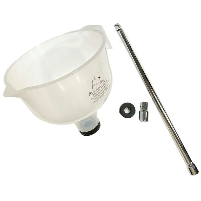 付属のオイルキャッチタンクは受口が150mmと大きく排出されたオイルをしっかり受けます。
