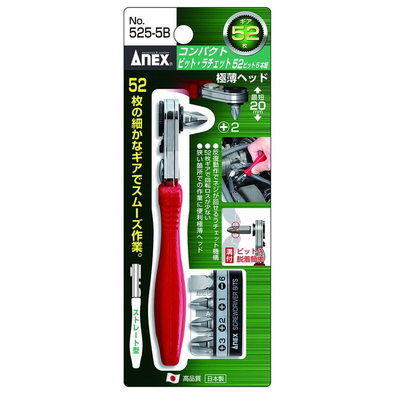 ANEX コンパクトビット・ラチェット52ストレート型ビット5 NO.525-5B アネックス 兼古製作所