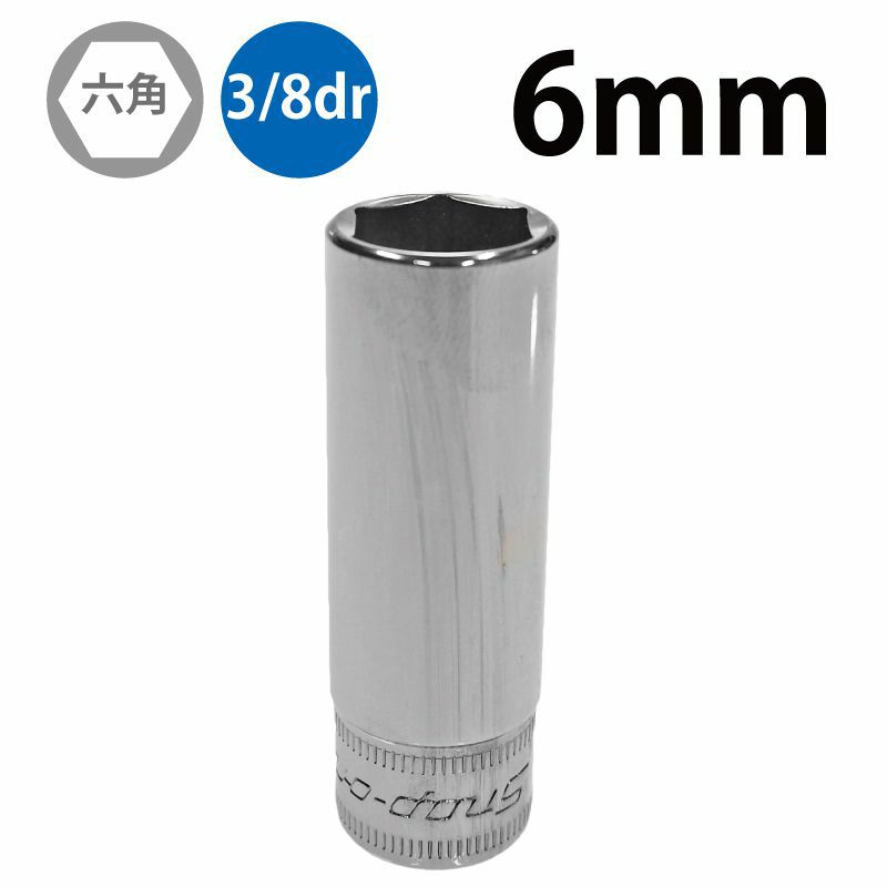 3/8drの6ポイント・メトリック(mm)サイズディープソケットです。
