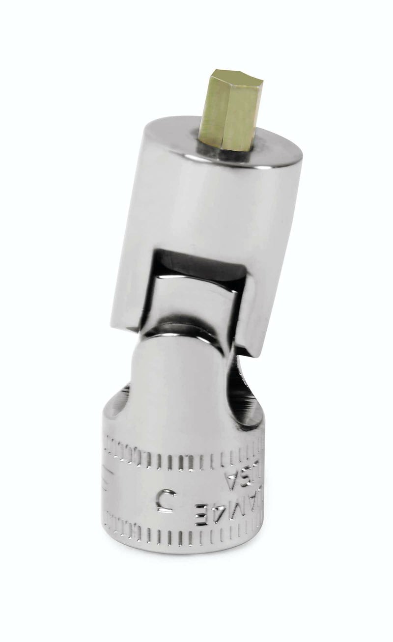 ヘックスソケット部と差込角部の間に、中央に2箇所関節を設ける事で、角度を付けた状態で回す事が出来るのがユニバーサルヘックスソケットです。