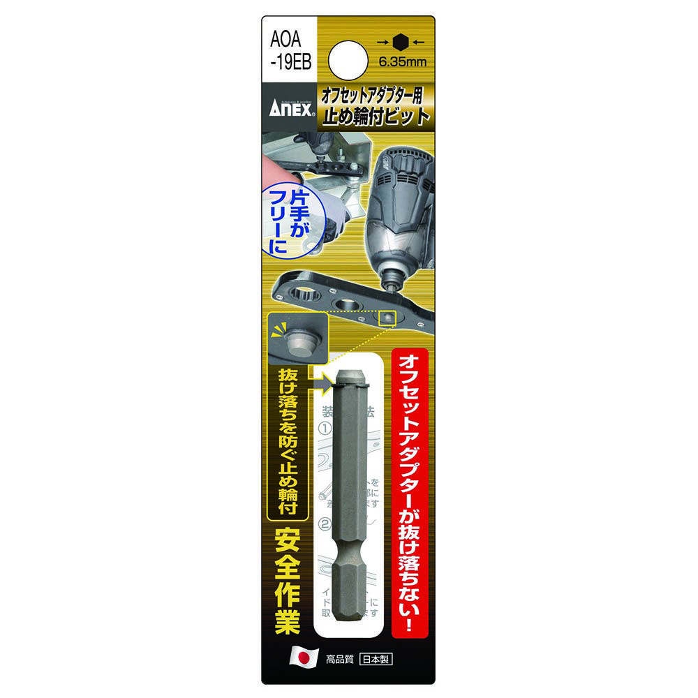 他の画像を見る ANEX オフセットアダプター専用止め輪付ビット AOA-19EB アネックス 兼古製作所 WEB会員価格 定価 ¥ 550 ¥ 385 税込 会員特別価格 ¥ 357 税込 カートに入れる お気に入りに登録する