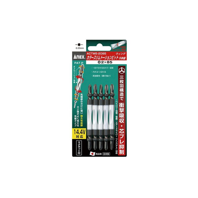 ANEX カラースリムトーションビット 5本組 +2X85 ACTM5-2085 工具 アネックス 兼古製作所