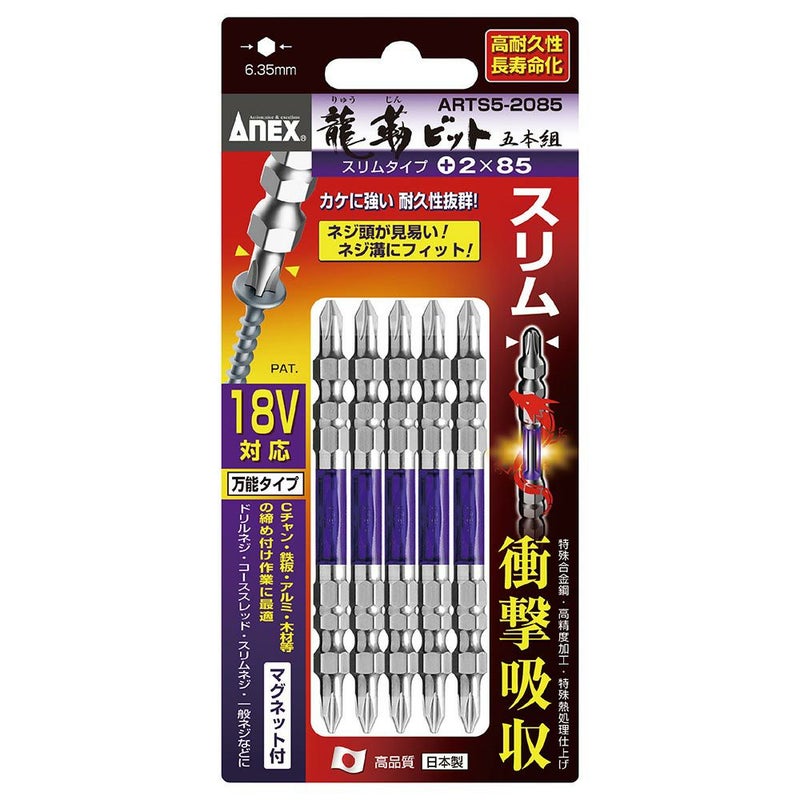 ANEX 龍靭ビット スリムタイプ 5本組 +2X85 ARTS5-2085 工具 アネックス 兼古製作所