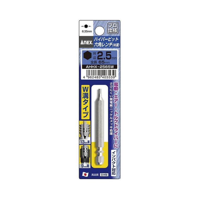 ANEX ハイパービット六角レンチ W溝タイプ 1本組 H2.5X65 AHHX-2565W 工具 アネックス 兼古製作所
