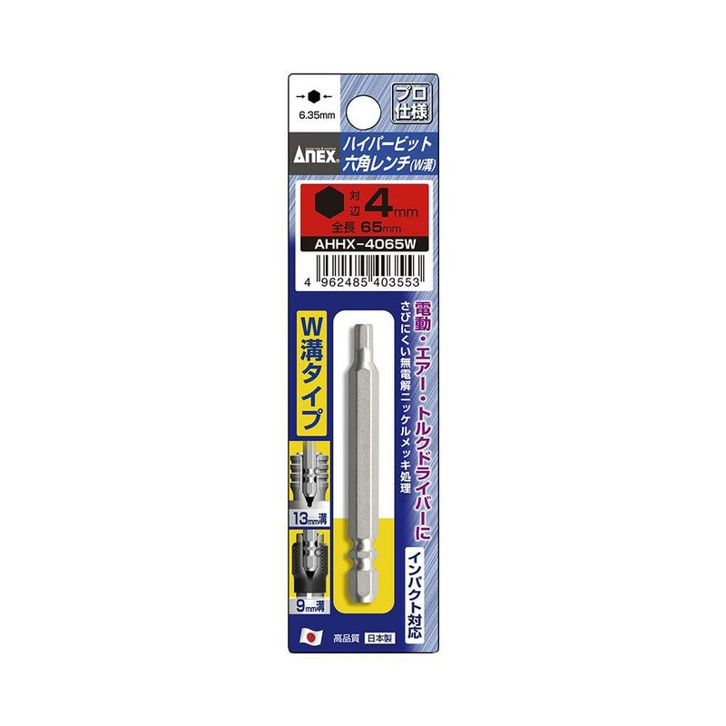ANEX ハイパービット六角レンチ W溝タイプ 1本組 H4X65 AHHX-4065W 工具 アネックス 兼古製作所