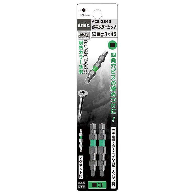 ANEX 四角カラービット 2本組 3X45 ACS-3345 工具 アネックス 兼古製作所