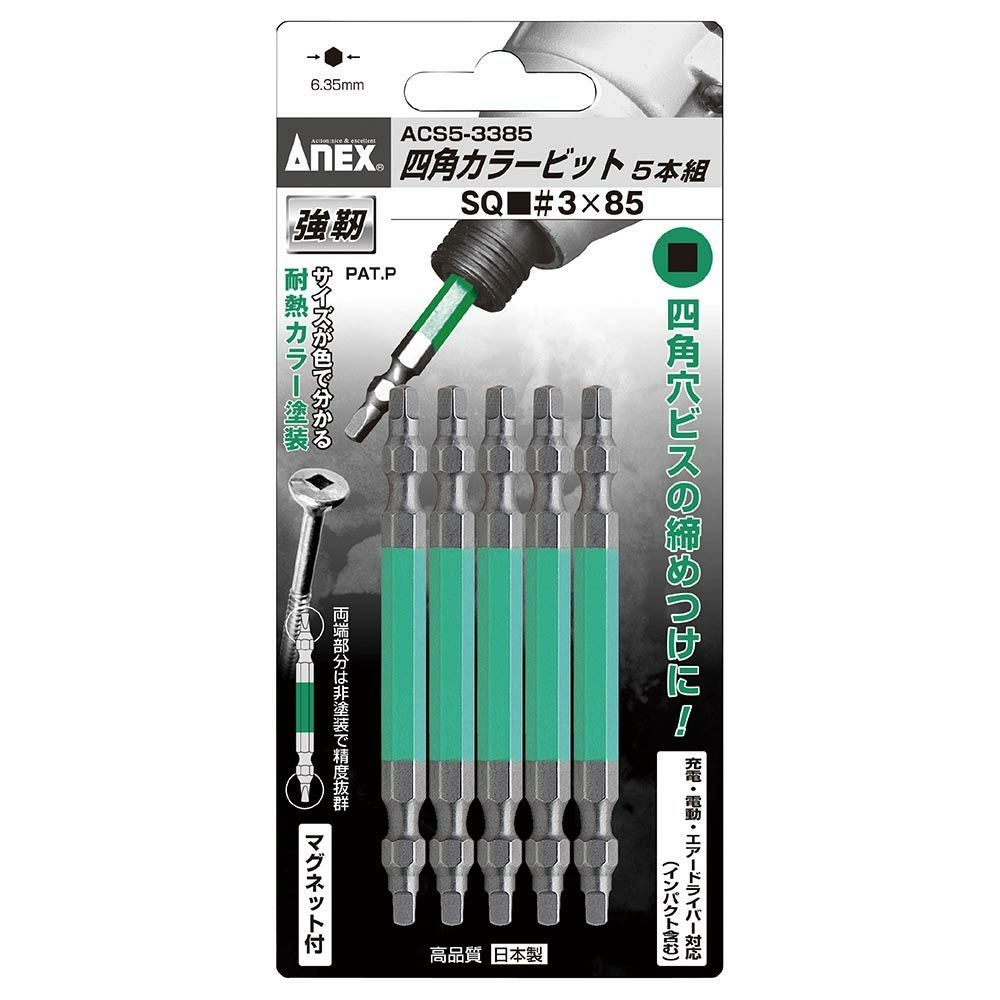 他の画像を見る ANEX 四角カラービット 5本組 3X85 ACS5-3385 工具 アネックス 兼古製作所 WEB会員価格 定価 ¥ 1,848 ¥ 1,293 税込 会員特別価格 ¥ 1,201 税込 カートに入れる お気に入りに登録する