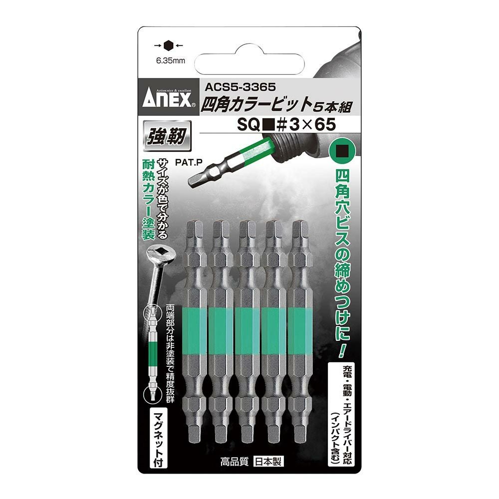 他の画像を見る ANEX 四角カラービット 5本組 3X65 ACS5-3365 工具 アネックス 兼古製作所 WEB会員価格 定価 ¥ 1,727 ¥ 1,208 税込 会員特別価格 ¥ 1,122 税込 カートに入れる お気に入りに登録する