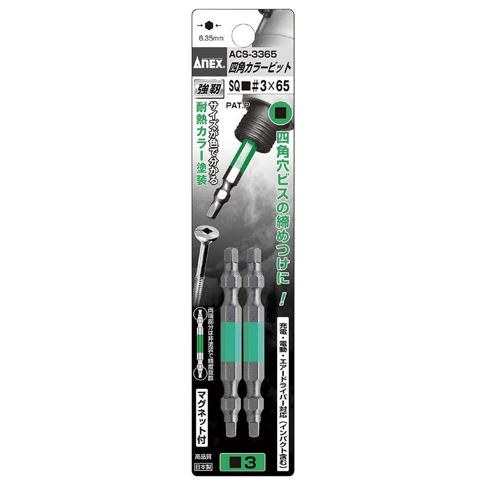他の画像を見る ANEX 四角カラービット 2本組 3X150 ACS-3315 工具 アネックス 兼古製作所 WEB会員価格 定価 ¥ 1,056 ¥ 739 税込 会員特別価格 ¥ 686 税込 カートに入れる お気に入りに登録する