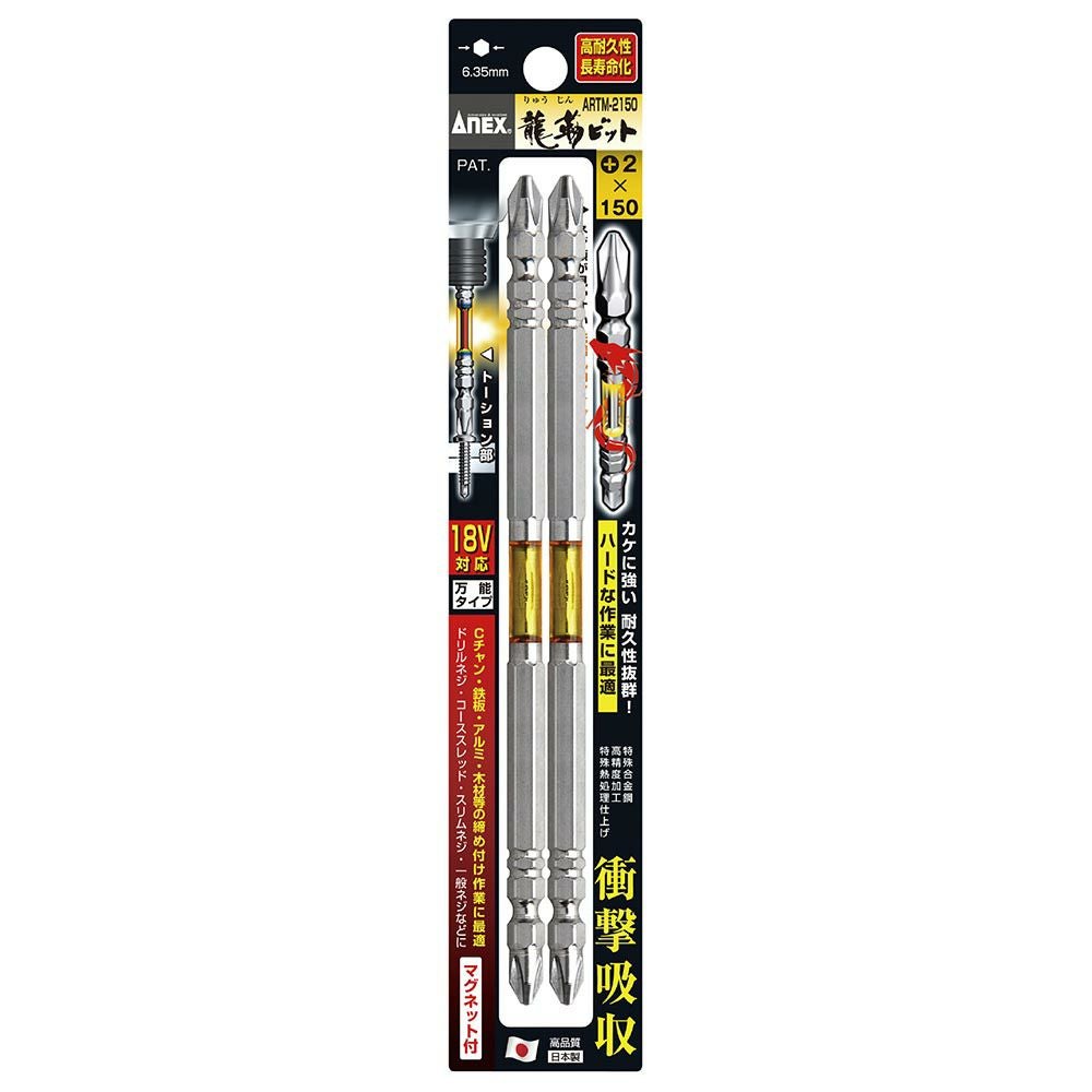 他の画像を見る ANEX 黒龍靭ビット タフ 2本組 +2X150 ABRM-2150 工具 アネックス 兼古製作所 WEB会員価格 定価 ¥ 1,265 ¥ 885 税込 会員特別価格 ¥ 821 税込 カートに入れる お気に入りに登録する