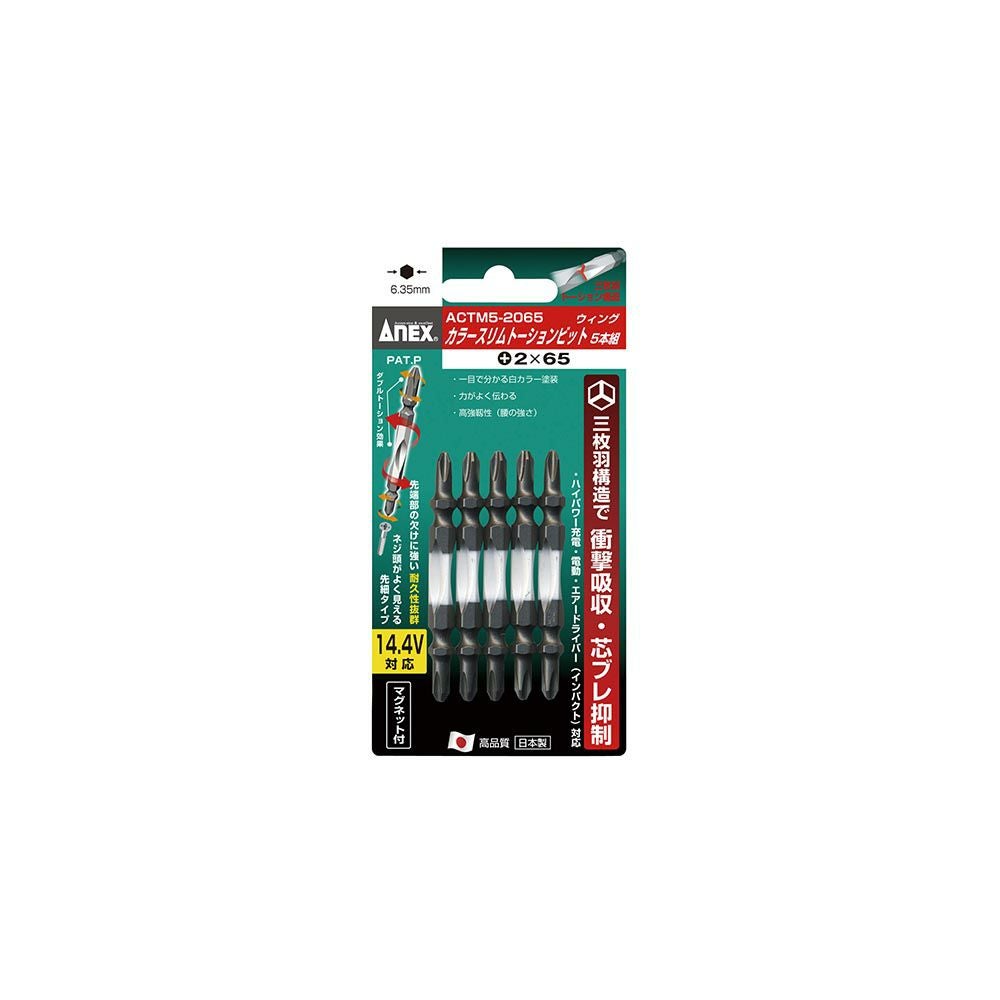 他の画像を見る ANEX カラースリムトーションビット 5本組 +2X65 ACTM5-2065 工具 アネックス 兼古製作所 WEB会員価格 定価 ¥ 1,584 ¥ 1,108 税込 会員特別価格 ¥ 1,029 税込 カートに入れる お気に入りに登録する