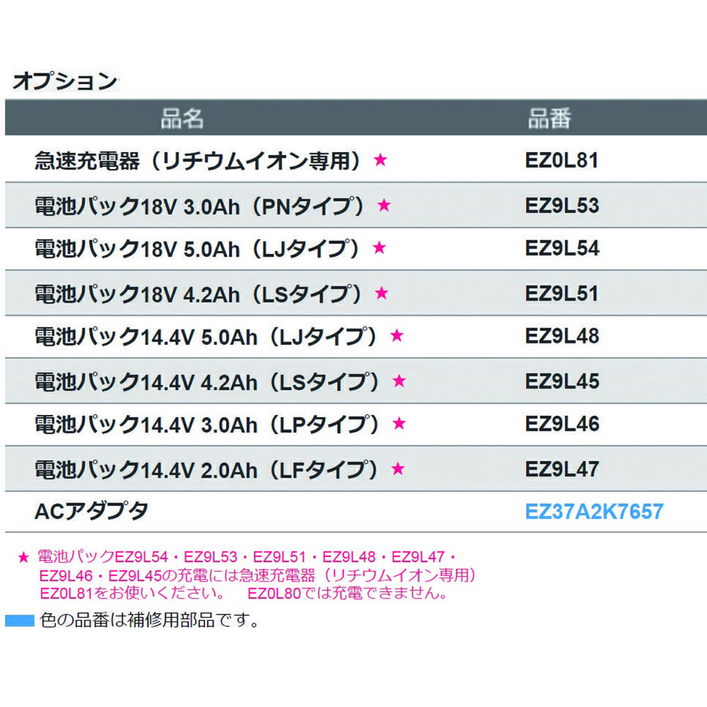 他の画像を見る パナソニック 18VLJ電池パック・充電器セット EZ9L54ST Panasonic 定価 ¥ 40,480 ¥ 32,384 税込 会員特別価格 ¥ 31,574 税込 在庫切れ 再入荷お知らせ お気に入りに登録する