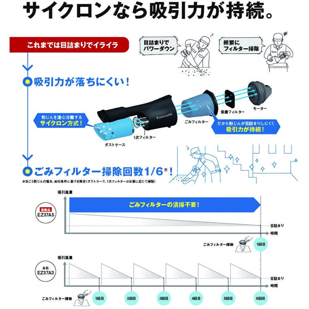 他の画像を見る パナソニック 工事用サイクロン式クリーナー 黒本体のみ EZ37A5X-B Panasonic 定価 ¥ 30,800 ¥ 24,640 税込 会員特別価格 ¥ 24,024 税込 カートに入れる お気に入りに登録する