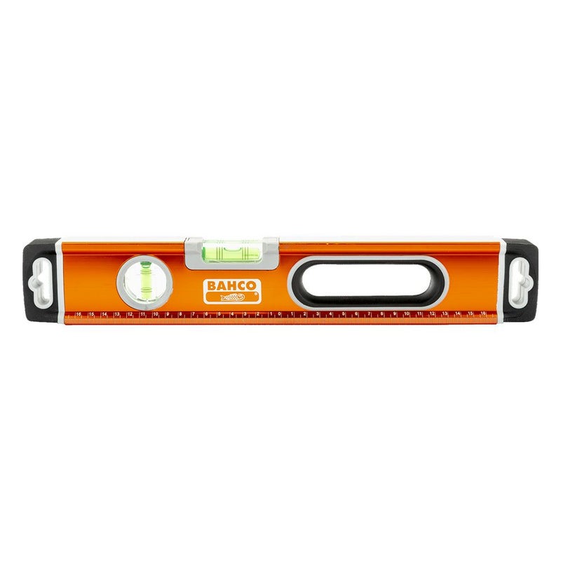 BAHCOカラーのアルマイト仕上げのアルミニウム水平器です。