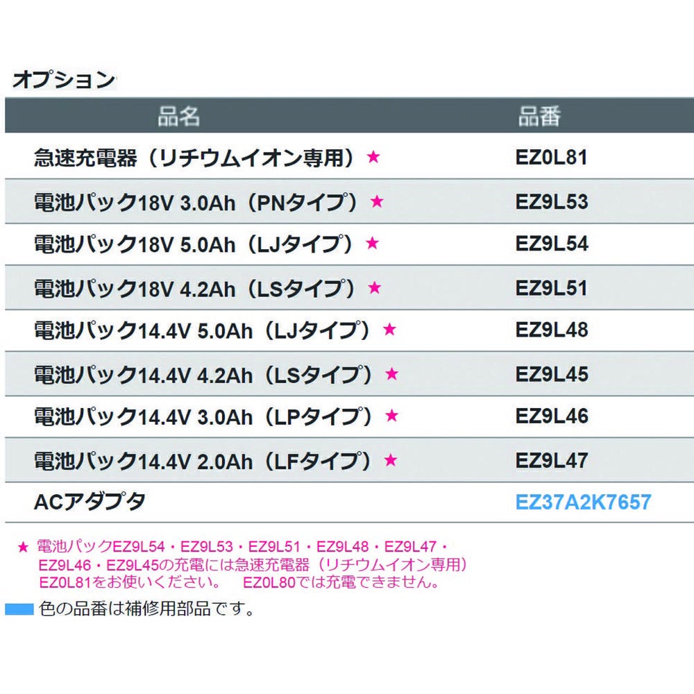 他の画像を見る パナソニック 7.2V充電スティックインパクト ピンク EZ7521LA2S-P Panasonic 定価 ¥ 38,280 ¥ 30,624 税込 会員特別価格 ¥ 29,858 税込 カートに入れる お気に入りに登録する