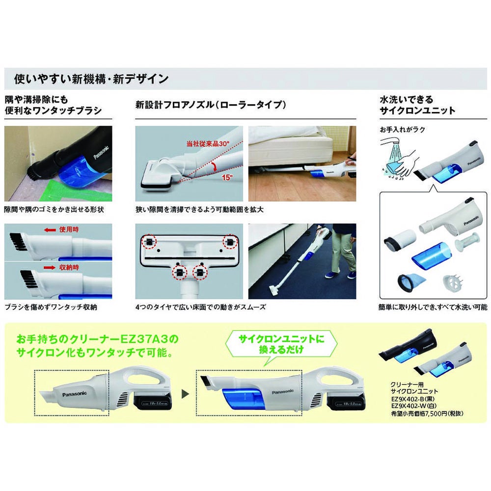 他の画像を見る パナソニック 工事用サイクロン式クリーナー 白本体のみ EZ37A5X-W Panasonic 定価 ¥ 30,800 ¥ 24,640 税込 会員特別価格 ¥ 24,024 税込 カートに入れる お気に入りに登録する