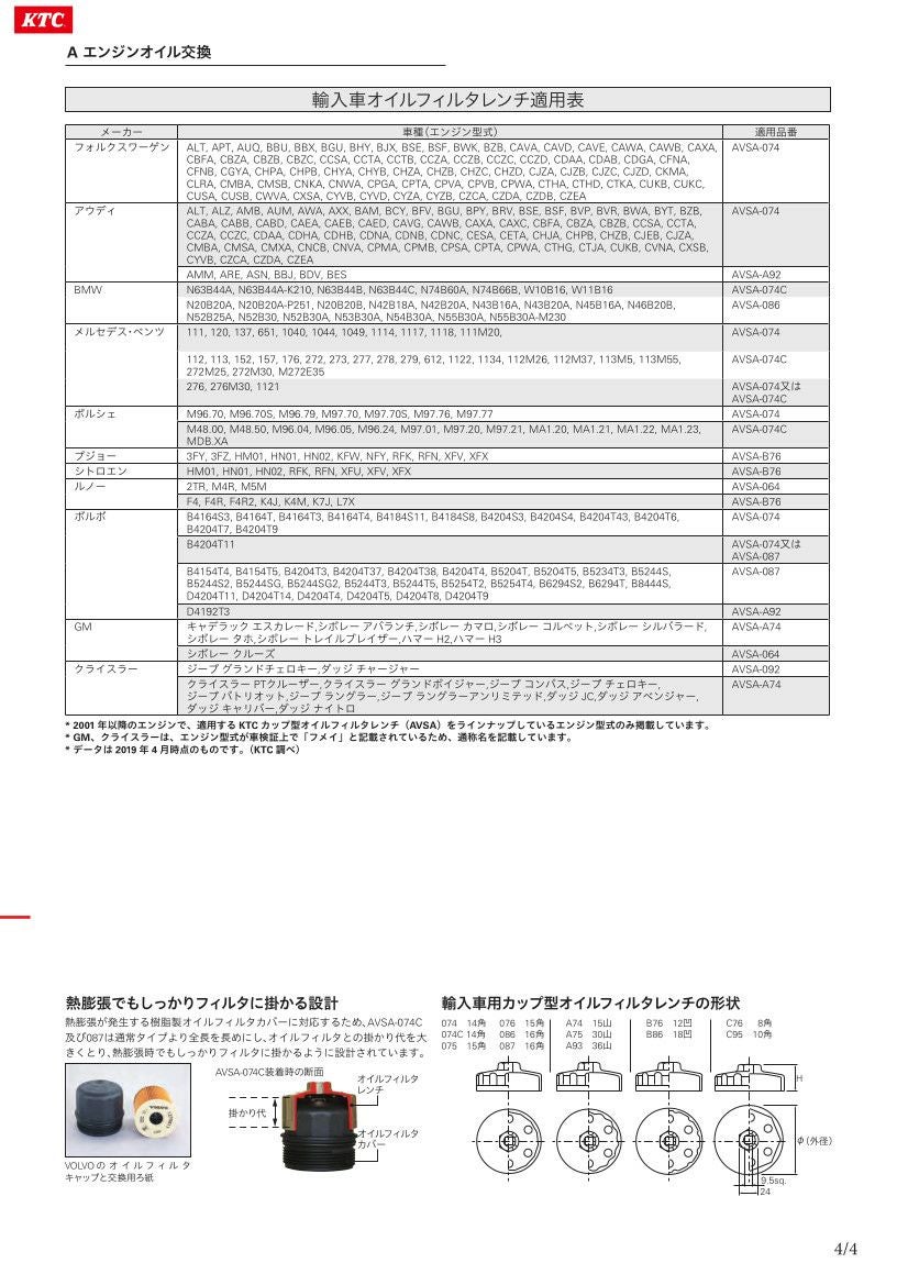 他の画像を見る KTC カップ型オイルフィルターレンチ AVSA-C76 ケーティーシー 定価 ¥ 4,136 ¥ 3,308 税込 会員特別価格 ¥ 3,225 税込 カートに入れる お気に入りに登録する