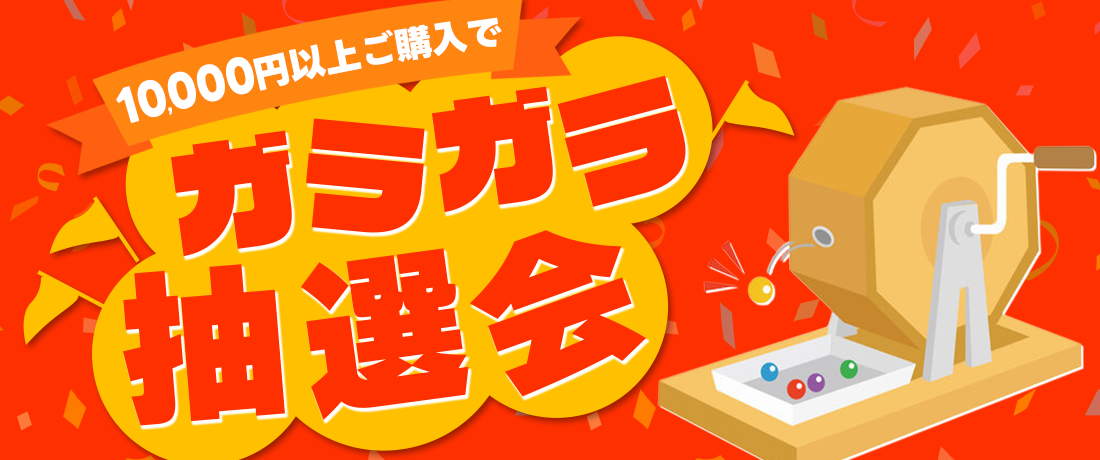 セール期間中に店頭で1万円以上ご購入いただくと、ガラガラ抽選会に挑戦していただけます。