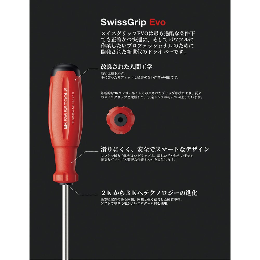 他の画像を見る PB SwissGrip EVO 38100.4-100DS スイスグリップEVO 貫通マイナスドライバー 定価 ¥ 3,927 ¥ 3,927 税込 会員特別価格 ¥ 3,847 税込 カートに入れる お気に入りに登録する
